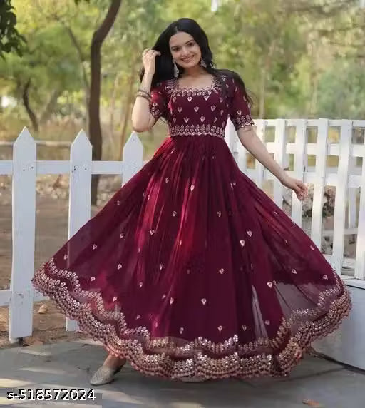 PRISHA FASHION LAUNCH NEW AKIRA HEAVY GEORJET SIQUENCE EMBROIDRED WORK GOWN